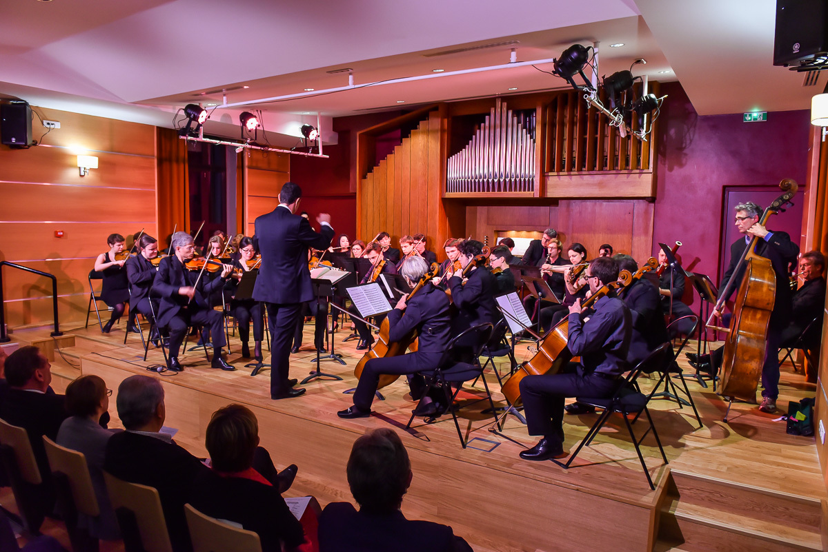 - 1 auditorium de 120 places avec un orgue et 2 pianos de concert et équipé d’une cabine d’enregistrement
