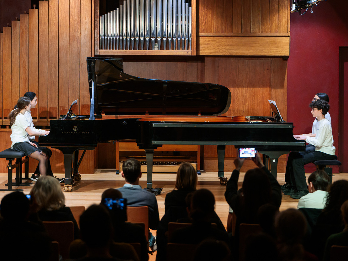 Les élèves y jouent à quatre, six ou huit mains sur un ou plusieurs claviers, selon des œuvres adaptées à leur niveau.